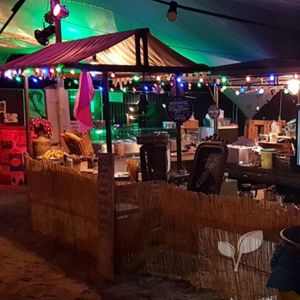 Accrochez une canisse en roseau devant la voile blanche ou derrière la stalle pour une ambiance cosy. Vous pouvez également utiliser le roseau pour accrocher des marchandises, de la publicité, du matériel de décoration ou un cordon lumineux. Les canisses en roseaux peuvent également être utilisés comme décoration sur scène, par exemple comme rideau de théâtre ou comme revêtement pour le bord de la scène.