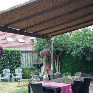 Incidemment, vous pouvez également utiliser des canisses en roseau comme couverture de chaume. Ce n’est pas étanche, mais offre une ombre merveilleuse et donne une belle atmosphère estivale ! Par exemple, il est merveilleux de s’asseoir sous la pergola ou le toit.